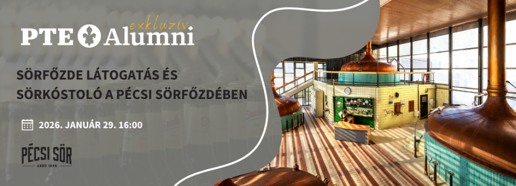 A Pécsi Tudományegyetem Alumni közössége januárban egy különleges, exkluzív sörfőzde-látogatásra és vezetett sörkóstolóra hívja tagjait a legendás Pécsi Sörfőzdébe. Testközelből ismerhetjük meg a sörfőzés művészetét, a főzde történetét, és természetesen kóstolhatjuk a válogatott söröket egy kötetlen, baráti hangulatú program keretében. Most nemcsak az asztalon találkozunk a sörrel – magunk is részesei lehetünk az élménynek, felfedezhetjük, mi is történik, mielőtt a sör a poharunkba kerül.
